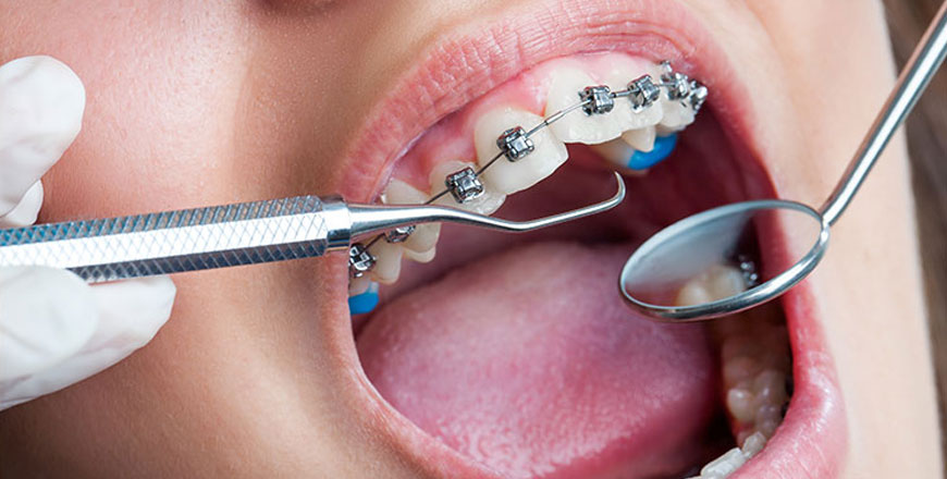 Tratamento com aparelhos fixos em metal e aparelhos estéticos em porcelana, aparelhos ortopédicos para reposicionamento dos ossos da face.